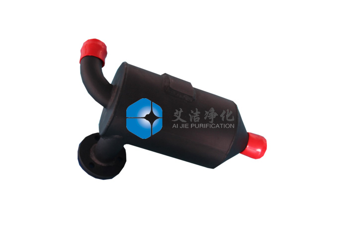 艾潔凈化生產的旋風式油氣分離器是讓氣液混合氣經過切向進氣道或是螺旋進氣道進入分離器內,使混合氣在分離器內旋轉運動,以此產生離心力來實現(xiàn)油滴的分離,它的分離機理與主動離心式油氣分離器相同,只是不需外界提供動力。
