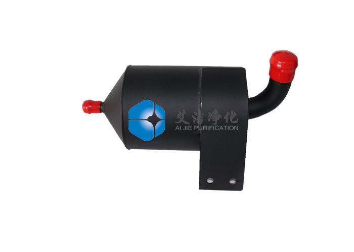 艾潔凈化生產(chǎn)的旋風(fēng)式油氣分離器是讓氣液混合氣經(jīng)過切向進(jìn)氣道或是螺旋進(jìn)氣道進(jìn)入分離器內(nèi),使混合氣在分離器內(nèi)旋轉(zhuǎn)運動,以此產(chǎn)生離心力來實現(xiàn)油滴的分離,它的分離機(jī)理與主動離心式油氣分離器相同,只是不需外界提供動力。